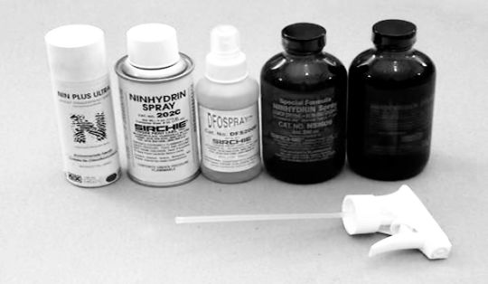 Нингидрин и его производные для выявления следов рук на пористых и шероховатых поверхностях