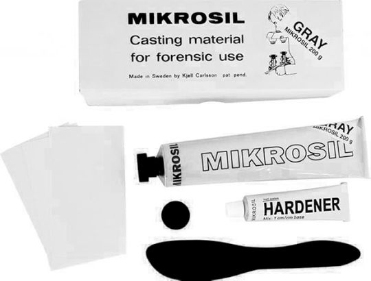 Слепочная масса Mikrosil (Микросил) предназначена для изъятия объемных статических и динамических следов и позволяет работать на различных поверхностях: пластичных, твердых, в том числе деревянных, бумажных, металлических и др.